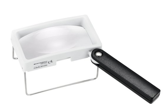 Ročna štirikotna lupa z zelo veliko lepo. Lahko jo uporabljamo kot ročno, ali kot stoječo lupo, saj ima vgrajene zložljive kovinske nogice.